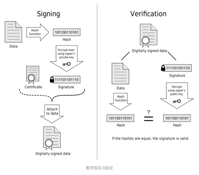 上述是对数字证书的签名和验证过程,对普通数据的数字签名和验证也是利用了同样的方法。