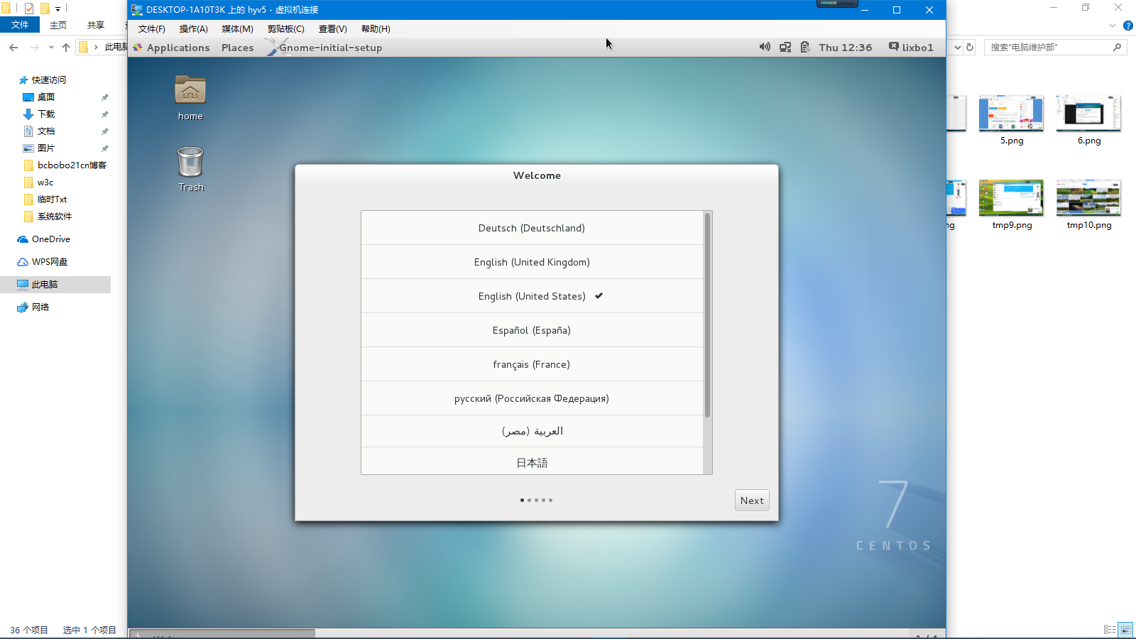 使用win10自带hyper-v;安装操作系统为CentOS;
