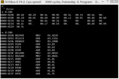 -e 0:200<enter>:逐个修改内存中的内容