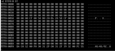 可以用-d fff0:0 ff命令查看主板生产日期,且ROM中的内容只可读不可写所以无法修改