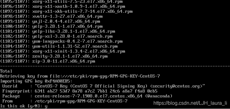 中间填y表示yes,所有提示y/n,都是y,让它继续