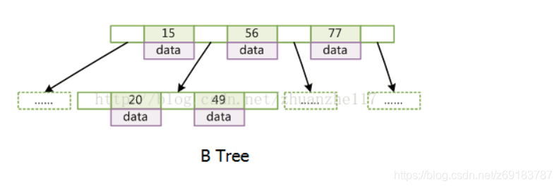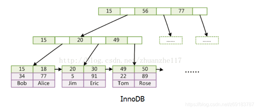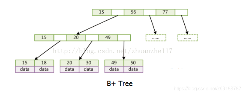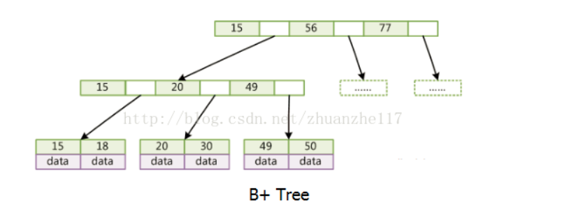 那为什么是B+树而不是B树呢,因为它内节点不存储data,这样一个节点就可以存储更多的key。