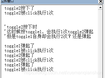 Debug.Print "toggle2被click执行1次"