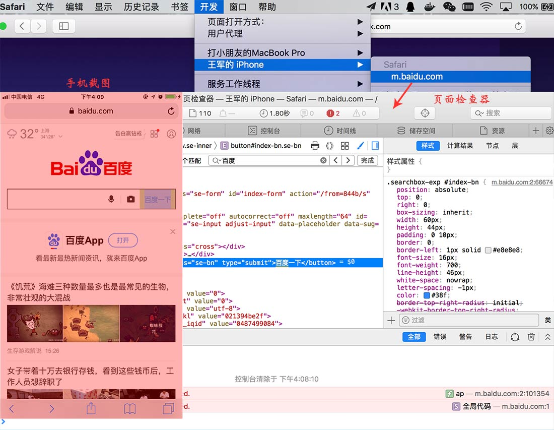 前言:移动端web页面调试一直是前端的一大痛点,所幸的是,在iOS调试方面,可以利用mac safari去调试对应的web页面。