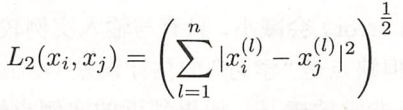 ,使用欧氏距离,也可以是更一般的Lp距离(minkowski距离)