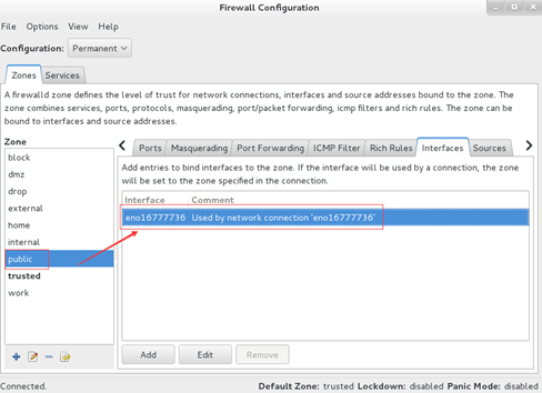 [root@linuxprobe ~]# firewall-cmd --permanent --zone=public --change-interface=eno16777736