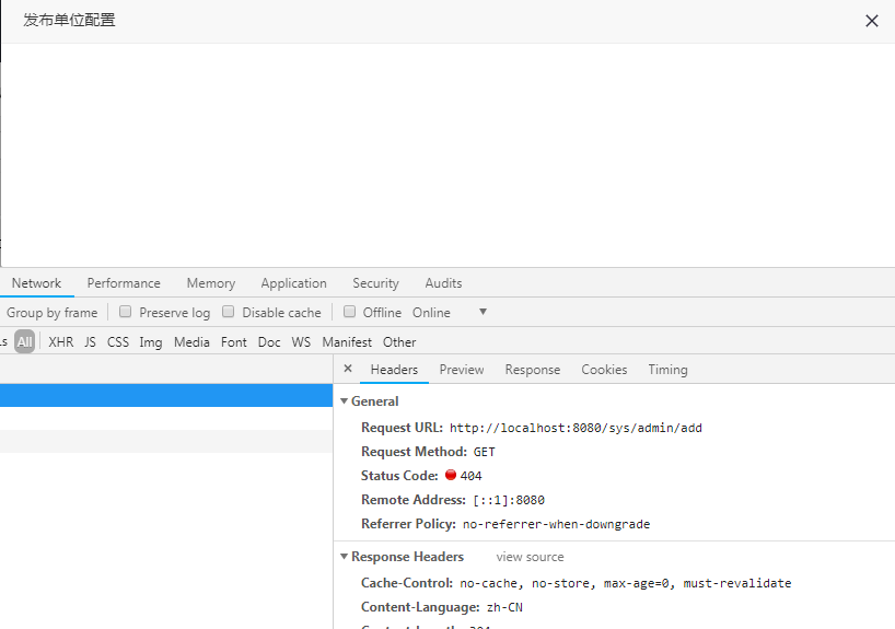 踩坑原因:因为使用layui需要弹出一个页面,后台权限使用的是security,弹出层需要请求后台返回逻辑视图名。当我点击完之后返回页面一片空白,打开控制台,显示请求路径为404,异常如下: