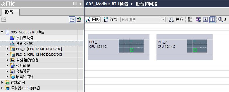 1.插入两台cpu 1214C,为两台PLC分别添加CM1241 RS422/RS485模块