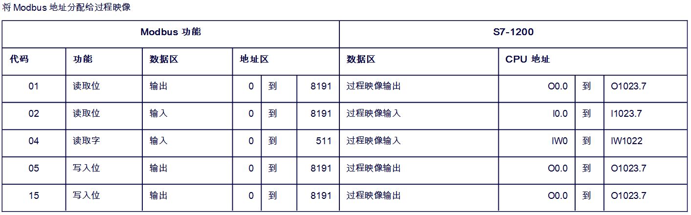 *从站中Modbus功能代码与PLC输入输出地址的对应关系可查询手册得到,如下图