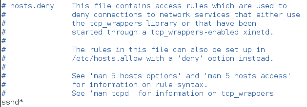 禁止本机所有ssh服务的流量 配置/etc/hosts.deny 文件 加入sshd*