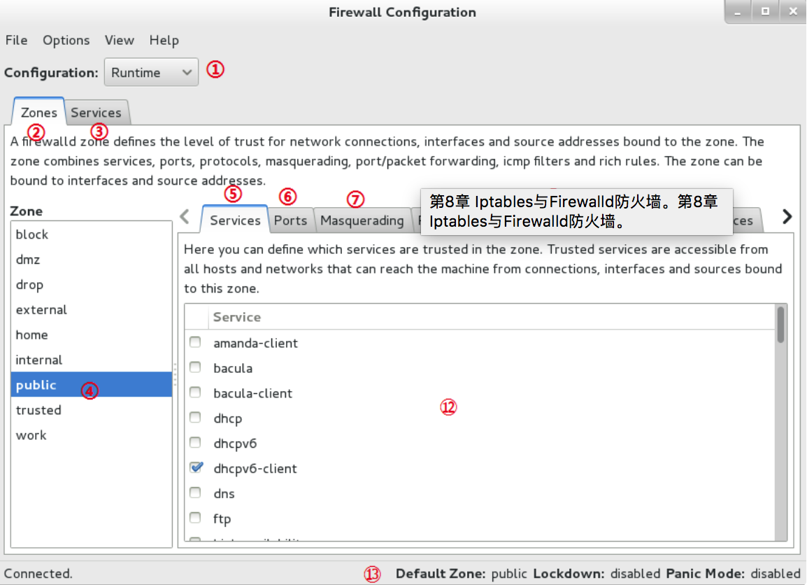 13:firewall-config工具的运行状态。