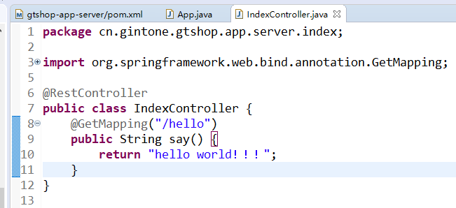 1、引入SpringBoot Web依赖 2、修改启动类App.java 3、创建测试类和测试方法 4、运行启动类 5、浏览器访问测试 来源:oschina链接:https://my.oschina.net/u/173975/blog/3190008 标签 Spring Spring Boot appserver