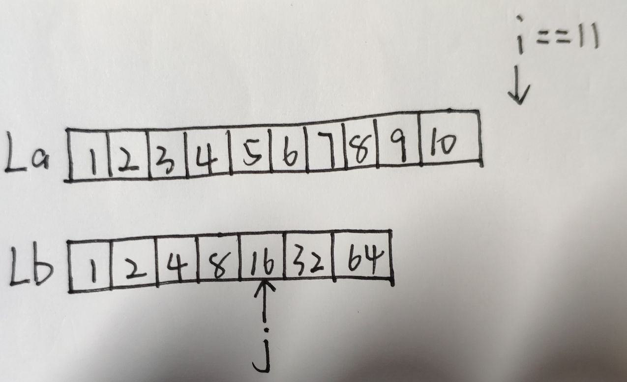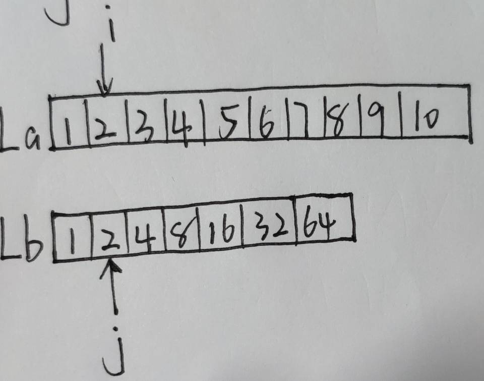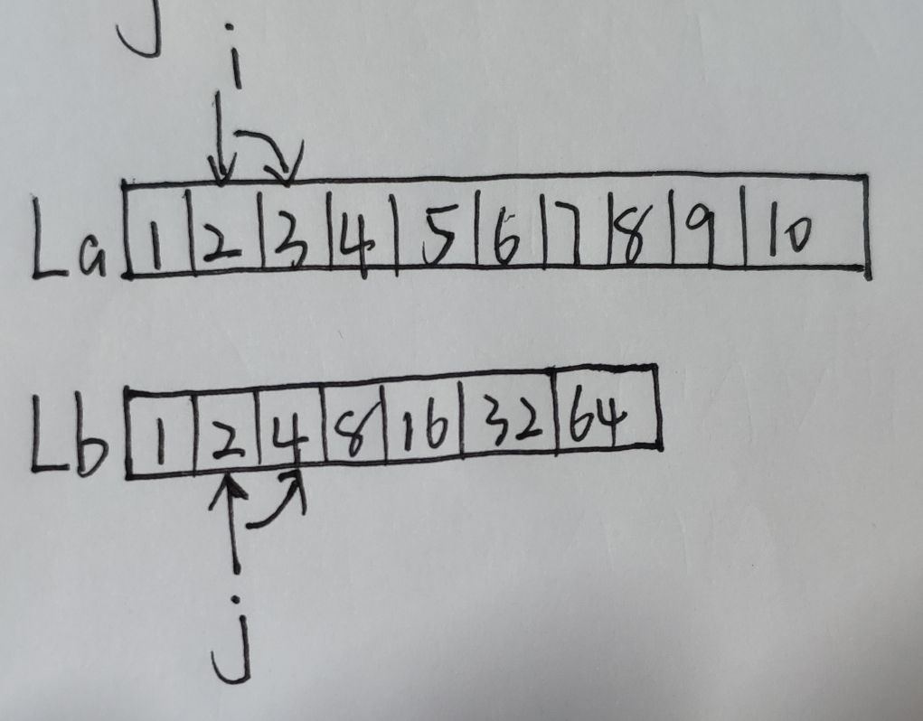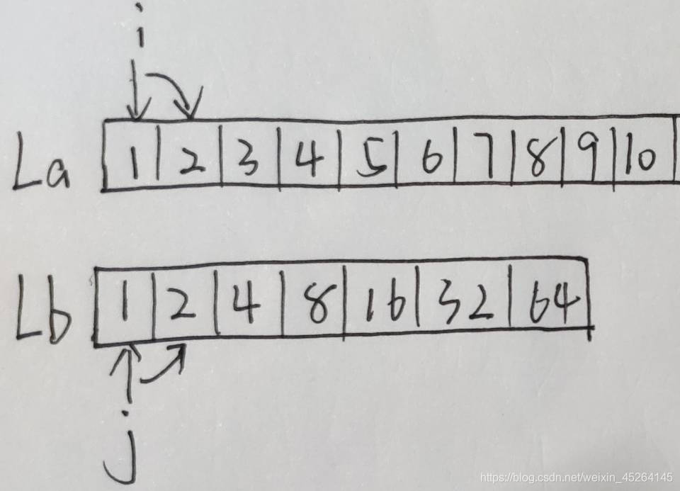 //i和j分别表示顺序表La和Lb中元素的逻辑位置。