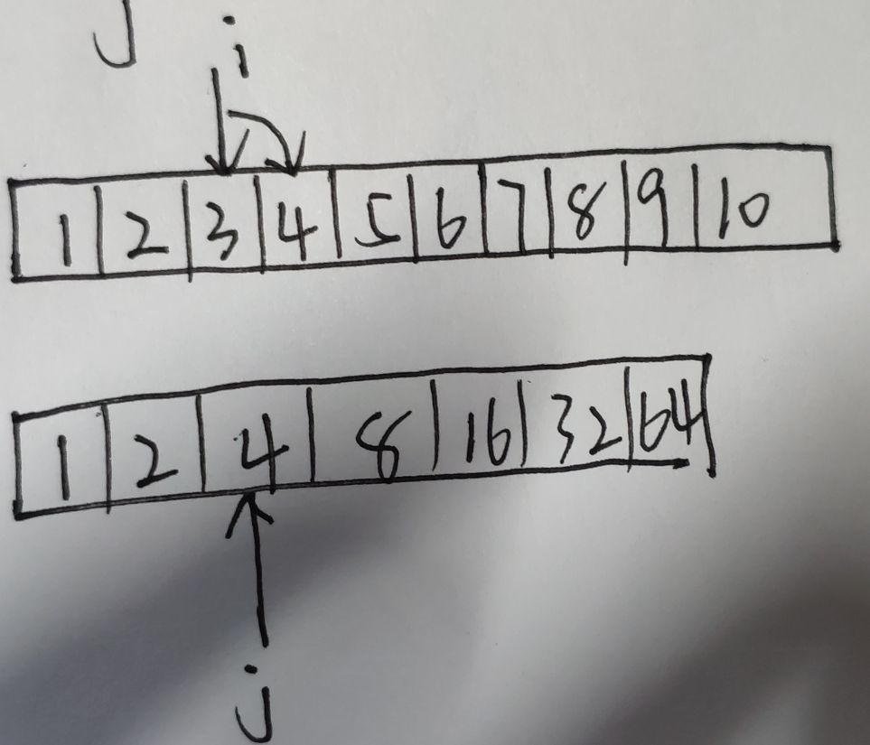 比较大小,发现3比4小,于是把3存入Lc中,i往前移动一个位置,j不动:
