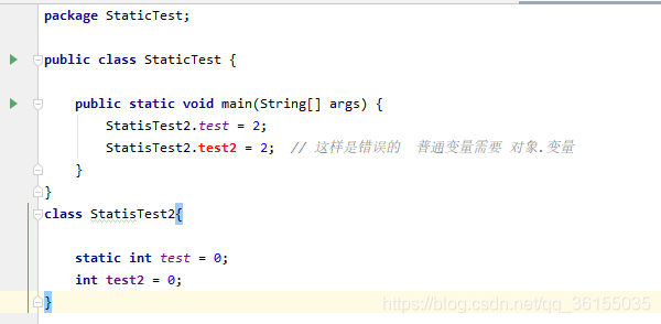 4.静态变量是全类共享的,普通变量是每个对象单独使用的。