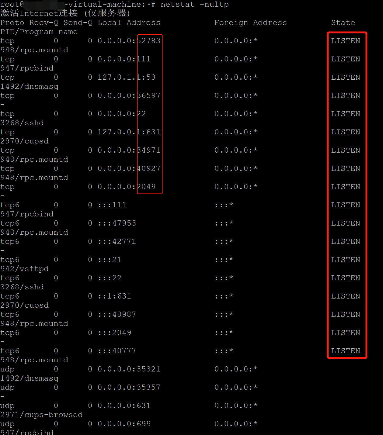 查看目前使用了的端口:netstat -nultp(此处不用加端口号)