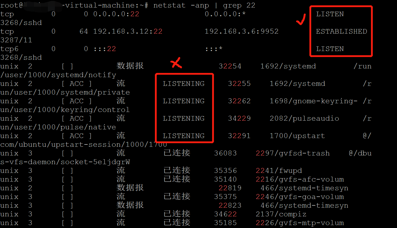 如果没有出现sshd字样,启动SSH:sudo /etc/init.d/ssh start(停止SSH:sudo /etc/init.d/ssh stop)