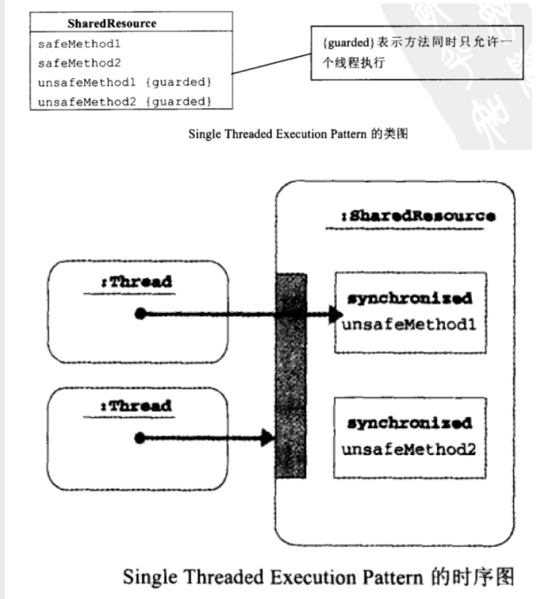 ②UnsafeMethod 从多个线程同时调用会发生问题,这类方法需要加以防护,指定只能单线程访问区域,即临界区(critical section)。