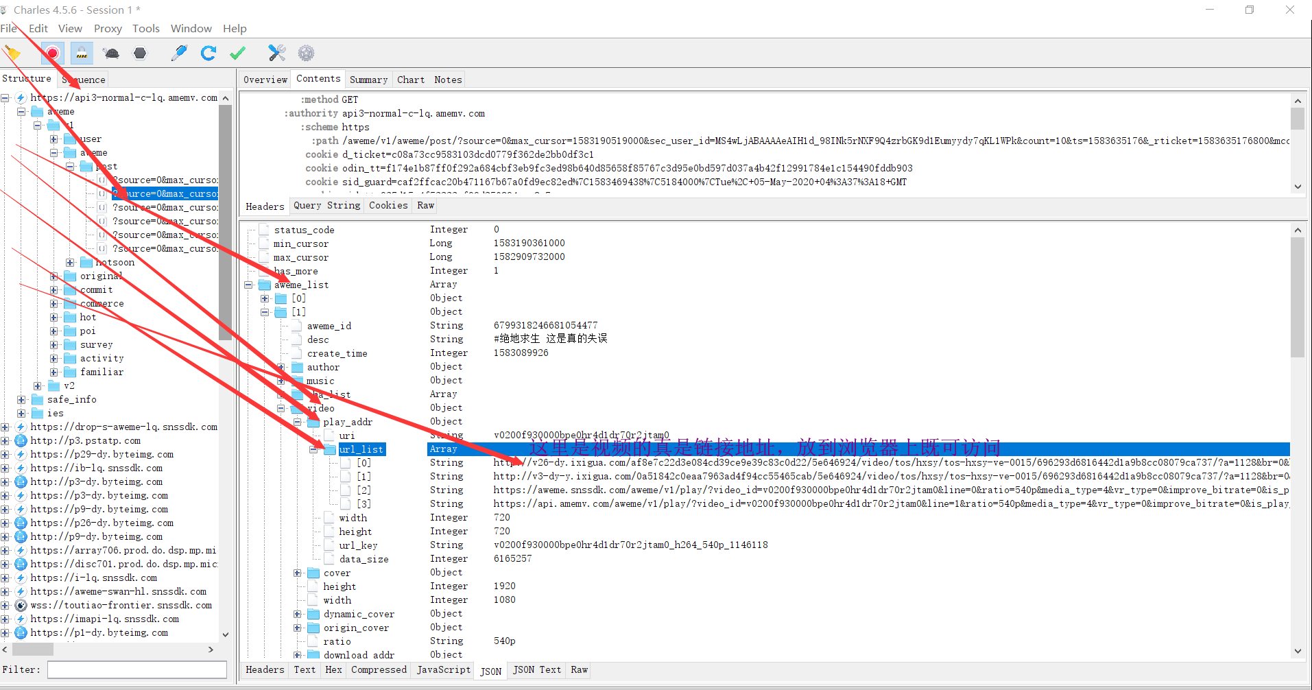 #在charles中刚刚看到每一个视频的所有信息