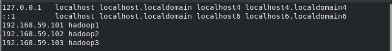 增加所有从节点的主机名,一个一行,我这里使用hadoop1做主节点,那么hadoop2、hadoop3就是从节点了