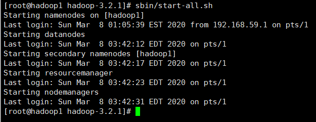 在主节点的hadoop目录下执行如下命令启动所有进程: