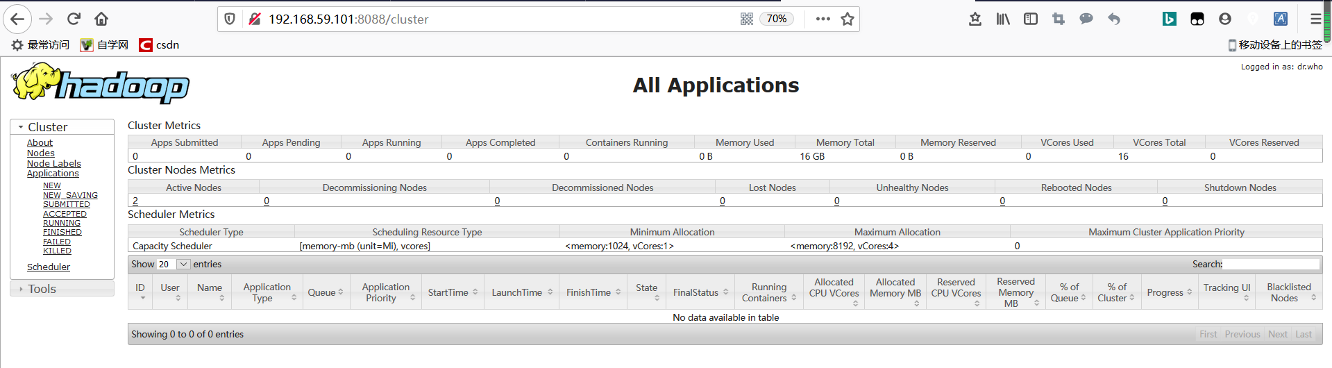 除了用jps来验证还可以在浏览器中访问cluster界面也是可以的: