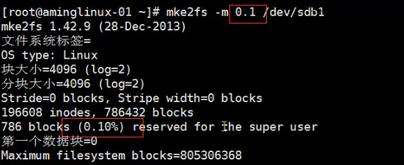 mke2fs -m 指定分区预留的空间大小