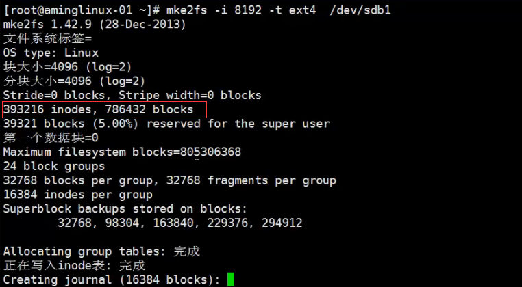 mke2fs -b 指定块的大小 (存大文件的可以分大一点的块)