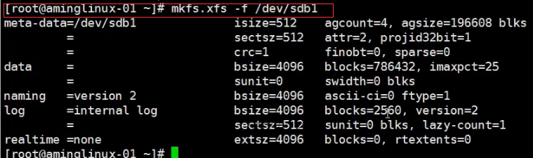 在已经格式化过的磁盘重新格式化 需要加选项 -f 强制格式化