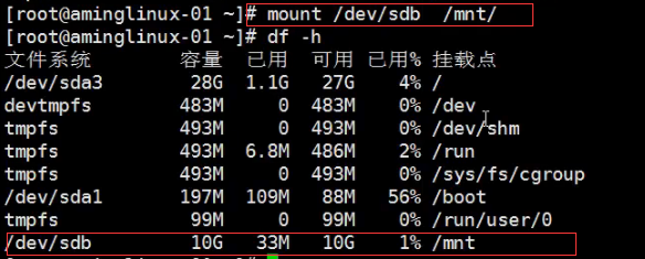 现在mount是看不到该分区。需要挂载点。 如果想看还没挂载的分区 使用命令