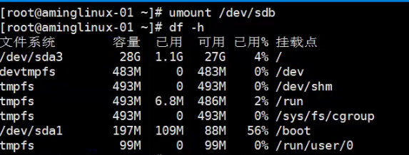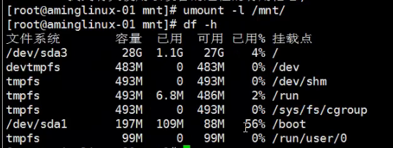 umount 分区名 卸载挂载点 (不能在要卸载的目标目录下)
