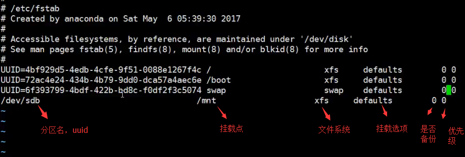 /etc/fstab/ 系统启动默认挂载哪里的配置文件