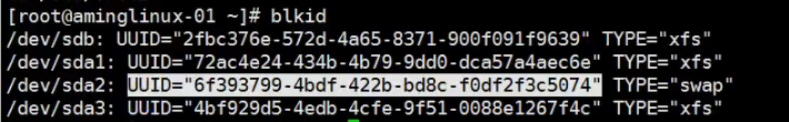 查看uuid 使用命令 blkid 就可以查看