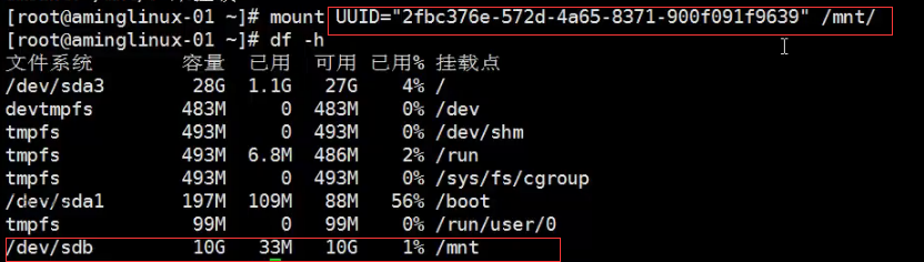 mount 分区名 挂载点