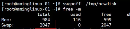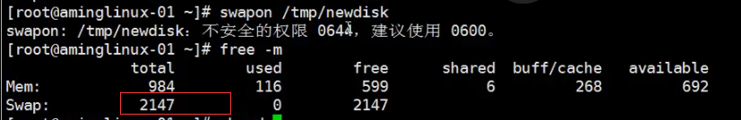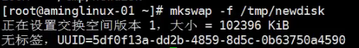 使用命令 swapon /tmp/newdisk 加载新加的swap