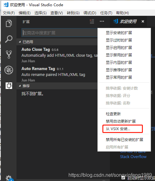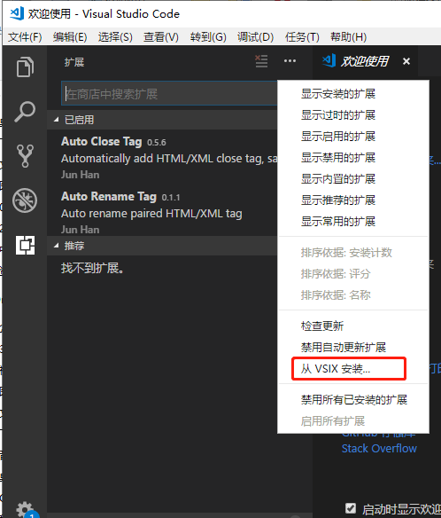 或者在View中找到快捷方式是ctrl+shift+X的extensions点击。