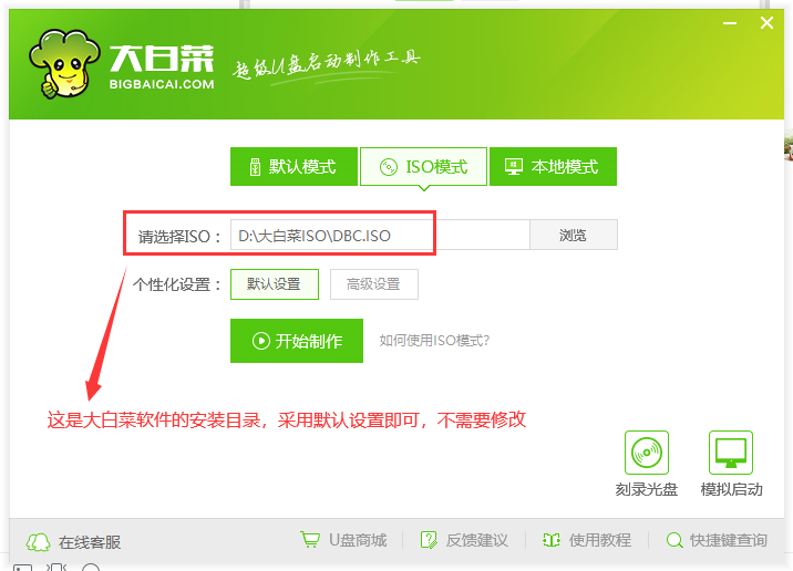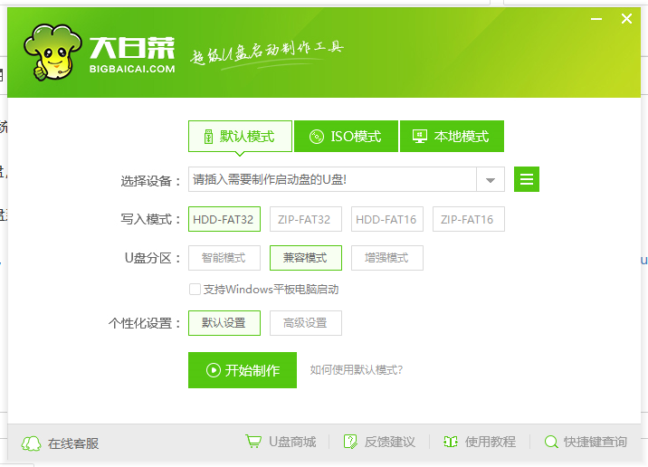 1.1使用大白菜软件制作系统盘,首先你要在另一台电脑(正常可用的)安装大白菜软件, 参考 大白菜装机版一键制作启动u盘教程 是:http://www.bigbaicai.wang/upqdzz.html。