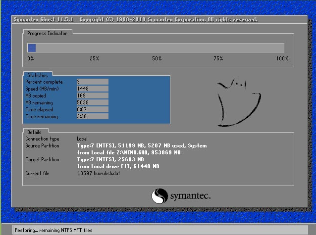 此时装机工具正将系统文件释放到指定磁盘分区当中,耐心等待系统释放过程结束即可 。