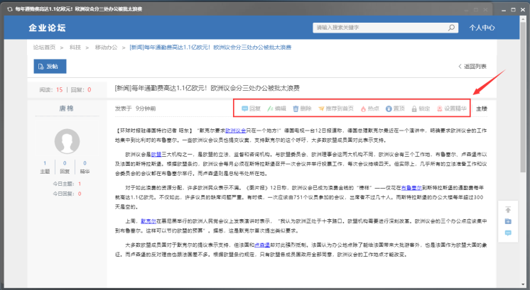 点击某主题帖,可对此贴进行编辑、删除等操作。