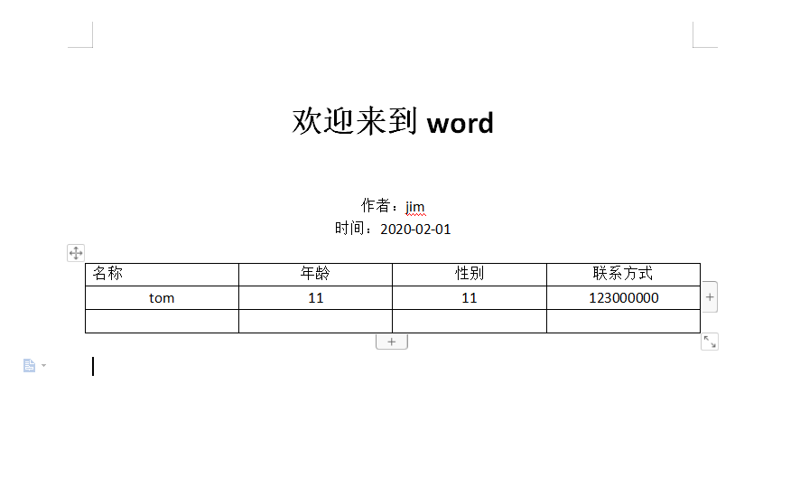 2.构建word模板,先创建word文件,注:本人使用的2003版本的word文档,其他版本未进行测试