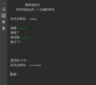 猜单词游戏就是计筧机随机产生一个单词,打乱字母顺序,供玩家去猜测。此游戏采用控制字符界面。