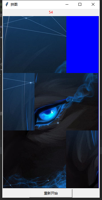拼图游戏将一幅图片分割咸若干拼块并将它们随机打乱顺序,当将所有拼块都放回原位置时,就完成了拼图(游戏结束)。本人物拼图游戏为3行3列,拼块以随机顺序排列,玩家用鼠标单击空白块四周的交换它们位置,直到所有拼块都回到原位置。拼图游戏运行界面