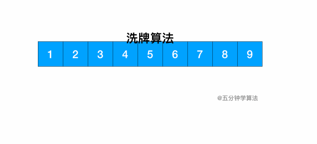 大家可以先简单的理解一下这个循环在做什么。其实非常简单,i 从后向前,每次随机一个 [0...i] 之间的下标,然后将 arr[i] 和这个随机的下标元素,也就是 arr[rand(0, i)] 交换位置。 大家注意,由于每次是随机一个 [0...i] 之间的下标,所以,在每一轮,是可以自己和自己交换的。 这个算法就是大名鼎鼎的 Knuth-Shuffle,即 Knuth 洗牌算法。