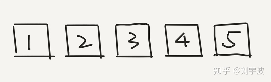 是时候仔细的看一下,这个简单的算法,为什么能做到保证:对于生成的排列,每一个元素都能等概率的出现在每一个位置了。 其实,简单的吓人:) 在这里,我们模拟一下算法的执行过程,同时,对于每一步,计算一下概率值。 我们简单的只是用 5 个数字进行模拟。假设初始的时候,是按照 1,2,3,4,5 进行排列的。
