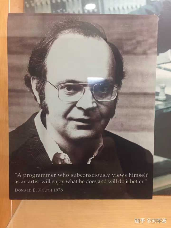 下面这张照片是他年轻的时候。这张照片是我在斯坦福大学计算机学院的橱窗拍的。
