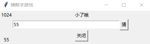 游戏介绍:在游戏中,程序随机生成1024以内的数字,再让玩家去猜,如果猜的数字过大过小都会进行提示,程序还会统计玩家猜的次数。使用Tkinter开发猜数字游戏。