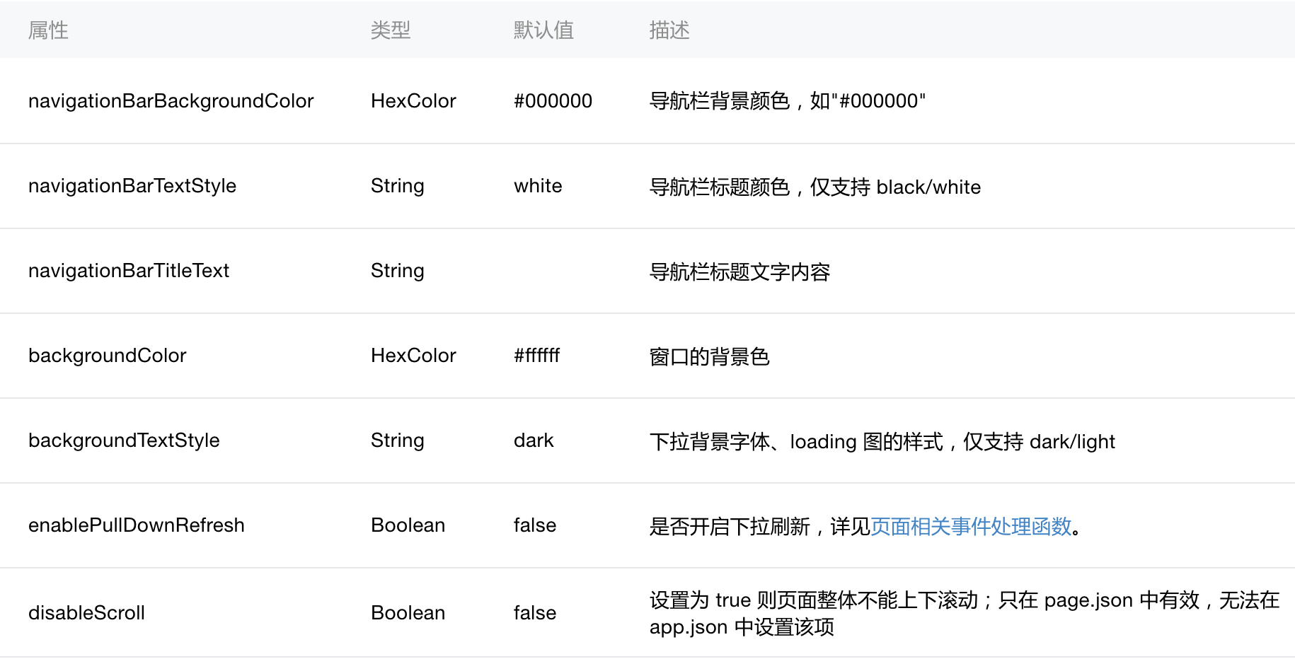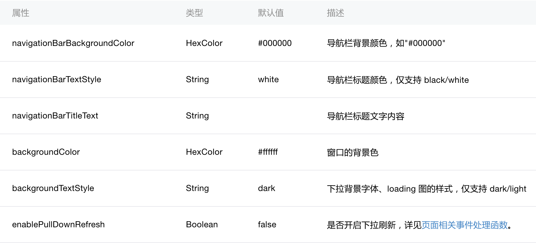 如 app.json :注:HexColor(十六进制颜色值),如"#ff00ff"