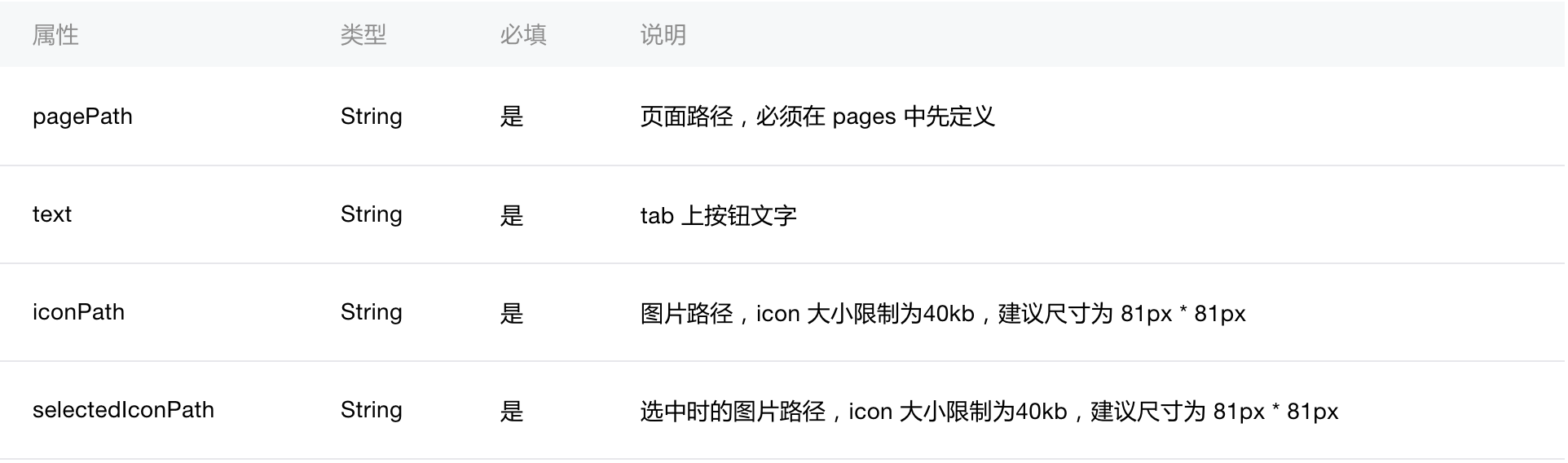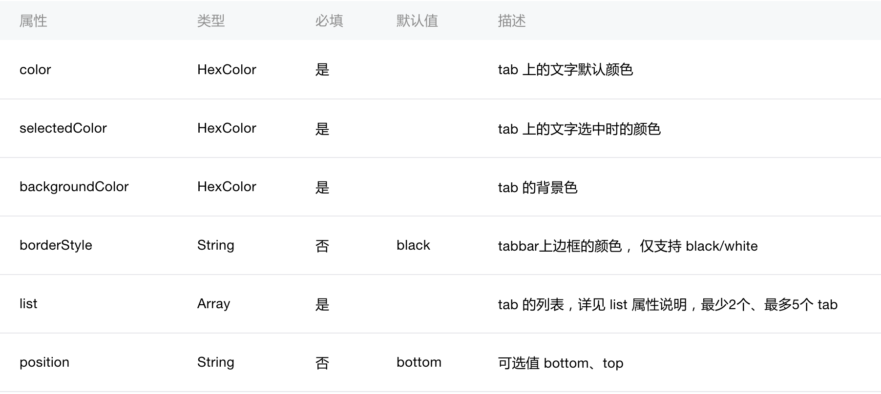 tabBar 是一个数组,只能配置最少2个、最多5个 tab,tab 按数组的顺序排序。