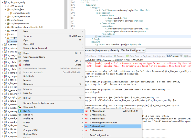 直接打开指定项目,在pom.xml上运行Run as ... -> Maven install即可,如下图所示:
